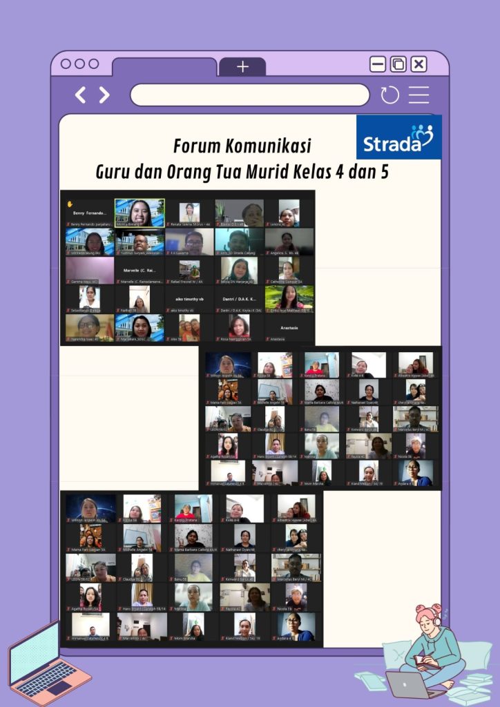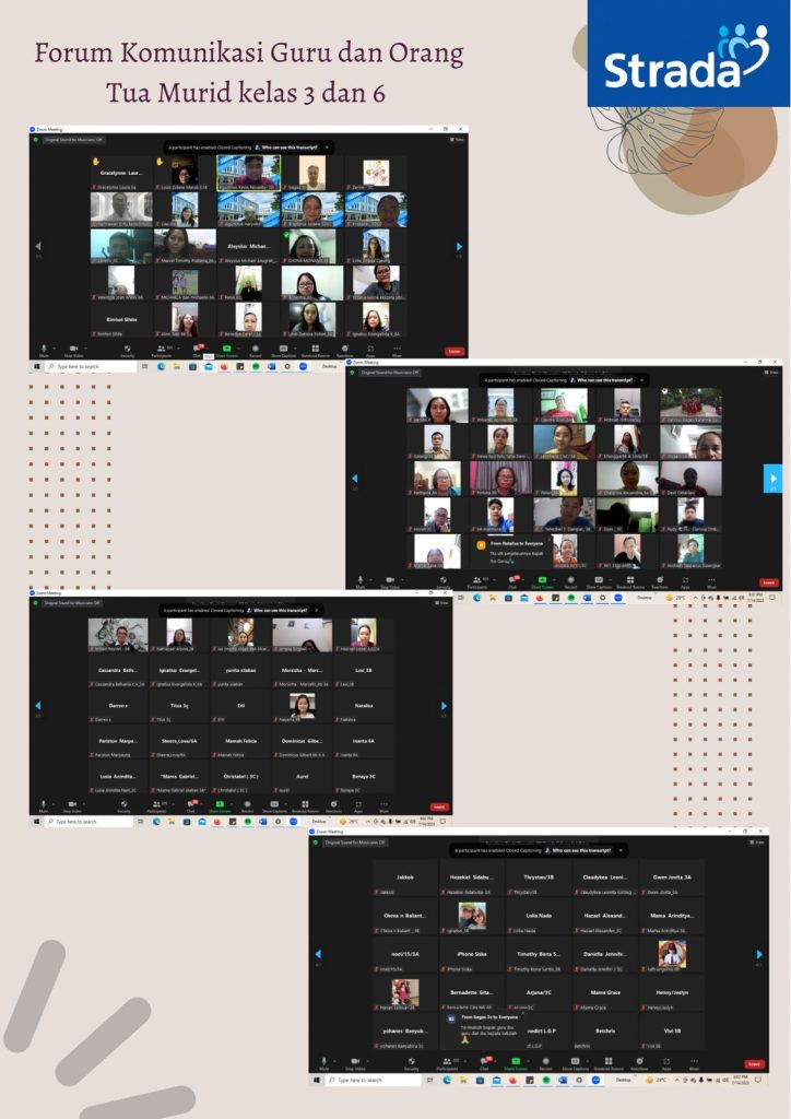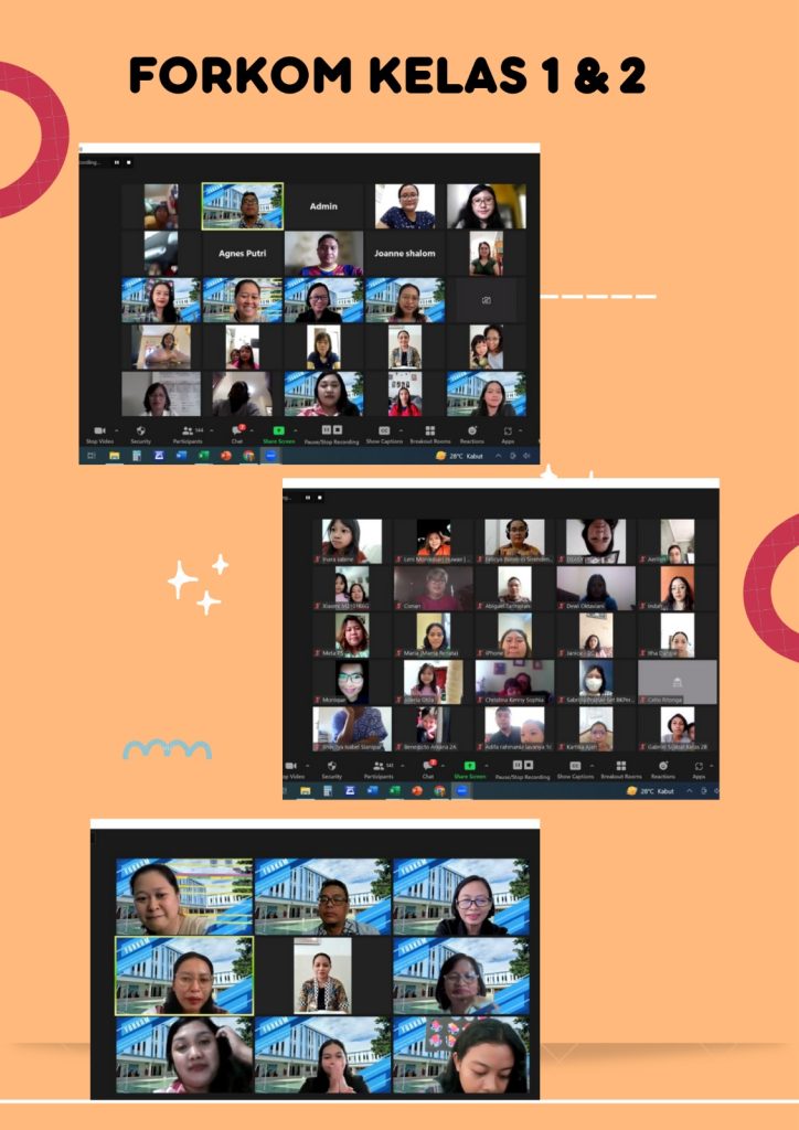 Forum komunikasi dilakukan secara daring namun tidak menghalangi semangat kehadiran orangtua, wali murid untuk hadir dalam layar virtual untuk memberikan dukungan dan semangat kepada bapak-ibu guru dan anak-anak, serta memberikan masukan – masukkan untuk perkembangan belajar anak-anak disekolah. Terimakasih mama, papa orangtua, wali murid atas segala dukungan dan kehadirannya, Semoga selalu tercipta kerjasama dan komunikasi yang baik antara mama, papa, wali murid dan bapak-ibu guru, sehingga segala pembelajaran dan rencana kegiatan di sekolah untuk anak-anak terlaksana dengan maksimal dan lancar.